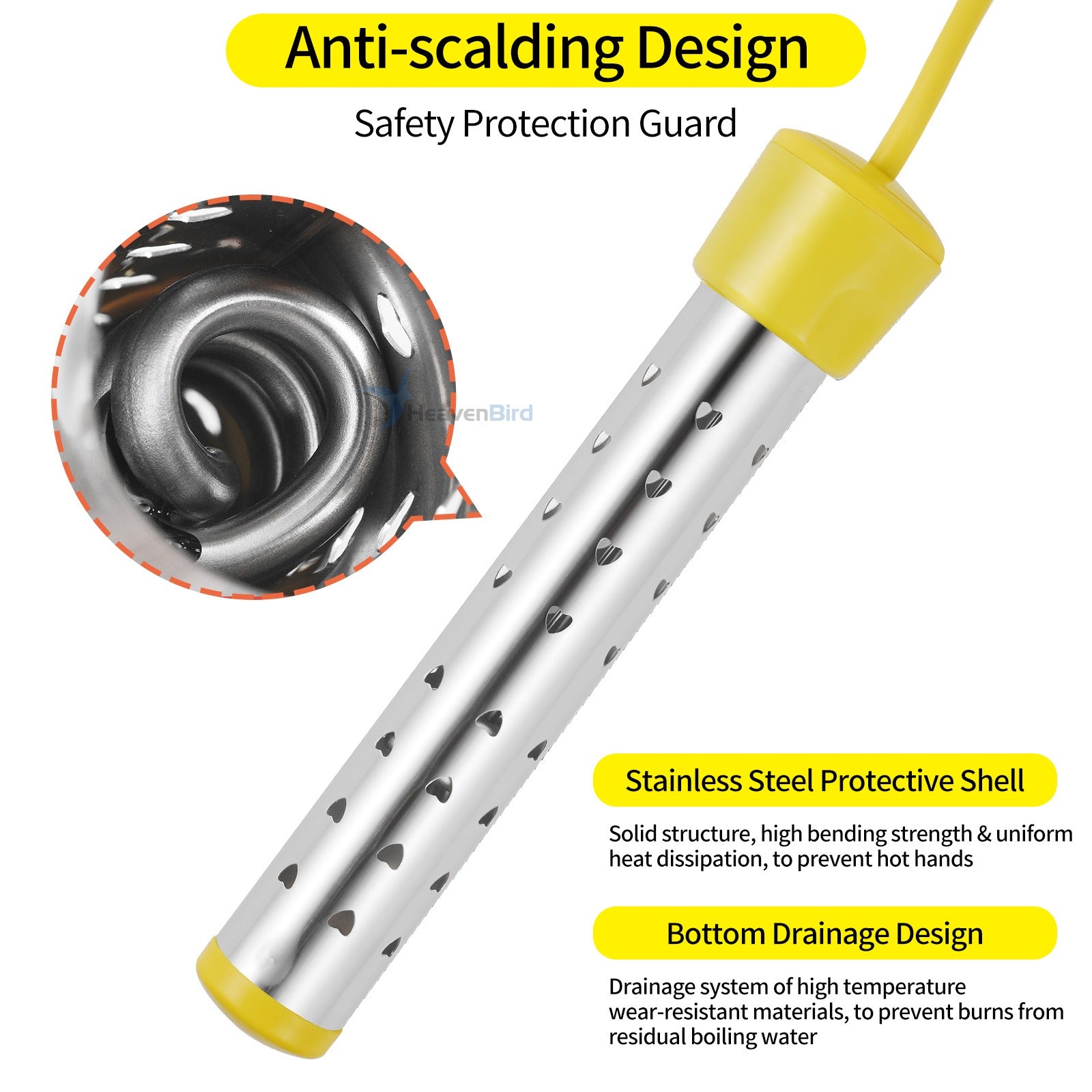 Portable Immersion Water Heater with Stainless Steel Cover Anti-scalding Bucket Heater Quick Heating Immersion Heater for Indoor & Outdoor