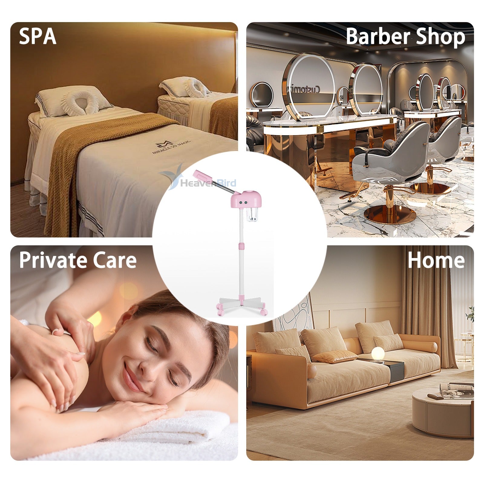 - Flexible Facial Steamer: Equipped with 5 quiet wheels, the facail steamer moves smoothly and quiet, and it can be easily installed and disassembly, easy for daily clean. With a 360 degree rotated nozzle and a 360° rotated main body, perfect for different needs of salon and SPA