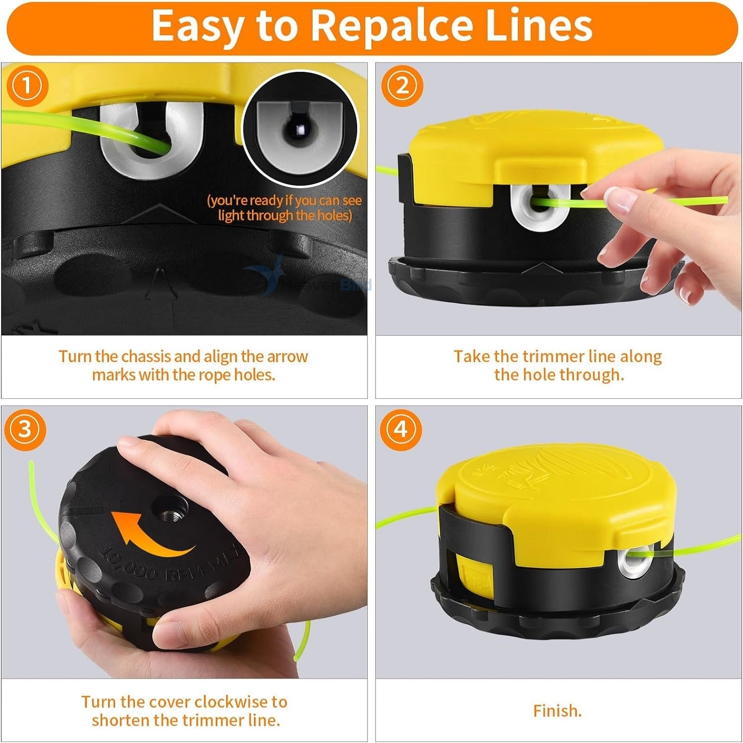 - Take the trimmer line alongthe hole through.